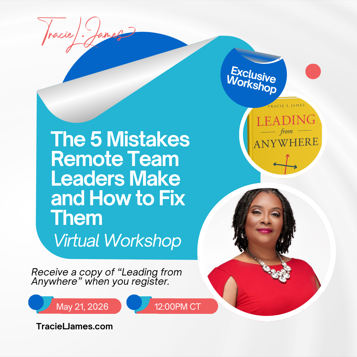 “Tracie James just handed today’s leaders the playbook we’ve been begging for. Leading from Anywhere isn’t fluff. It’s not another “feel-good” leadership book packed with theory and buzzwords. This is a no-nonsense, practical, actionable guide that meets remote and hybrid leaders exactly where we are … stretched thin, managing teams across time zones, and craving clarity in a sea of Zoom fatigue.”
